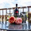Una camera da letto matrimoniale con letto queen size e un balconcino con tavolino e sedie, e bagno fornito di grande doccia e sanitari.
