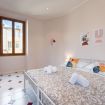 Dal salotto si accede alle quattro camer da letto, dotate di letti singoli che possono diventare matrimoniali all'occorrenza.