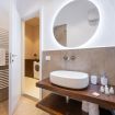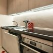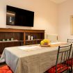 Upon entering, you will find a living room with a comfortable sofa that overlooks a very bright dining area, a modern, fully equipped kitchen with a refrigerator, oven, induction cooktop, dishwasher, and microwave. The large rustic table in the living room can easily be converted into a workspace/office area. A smart TV is also available.
