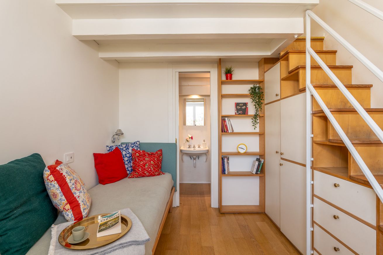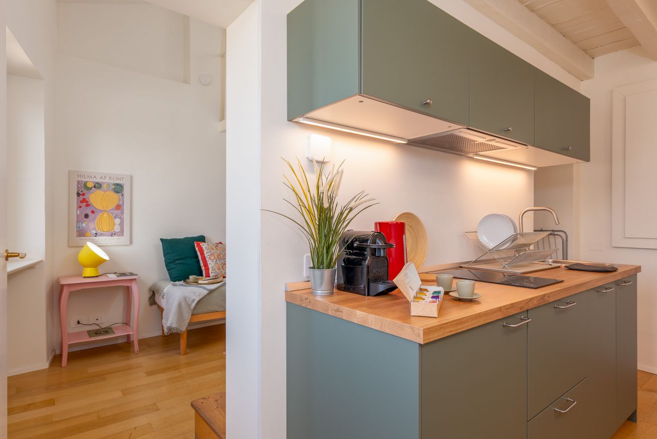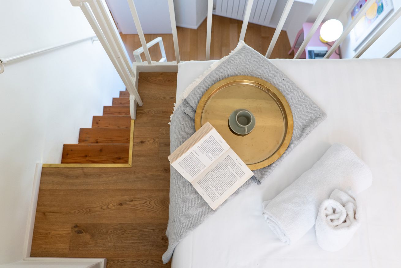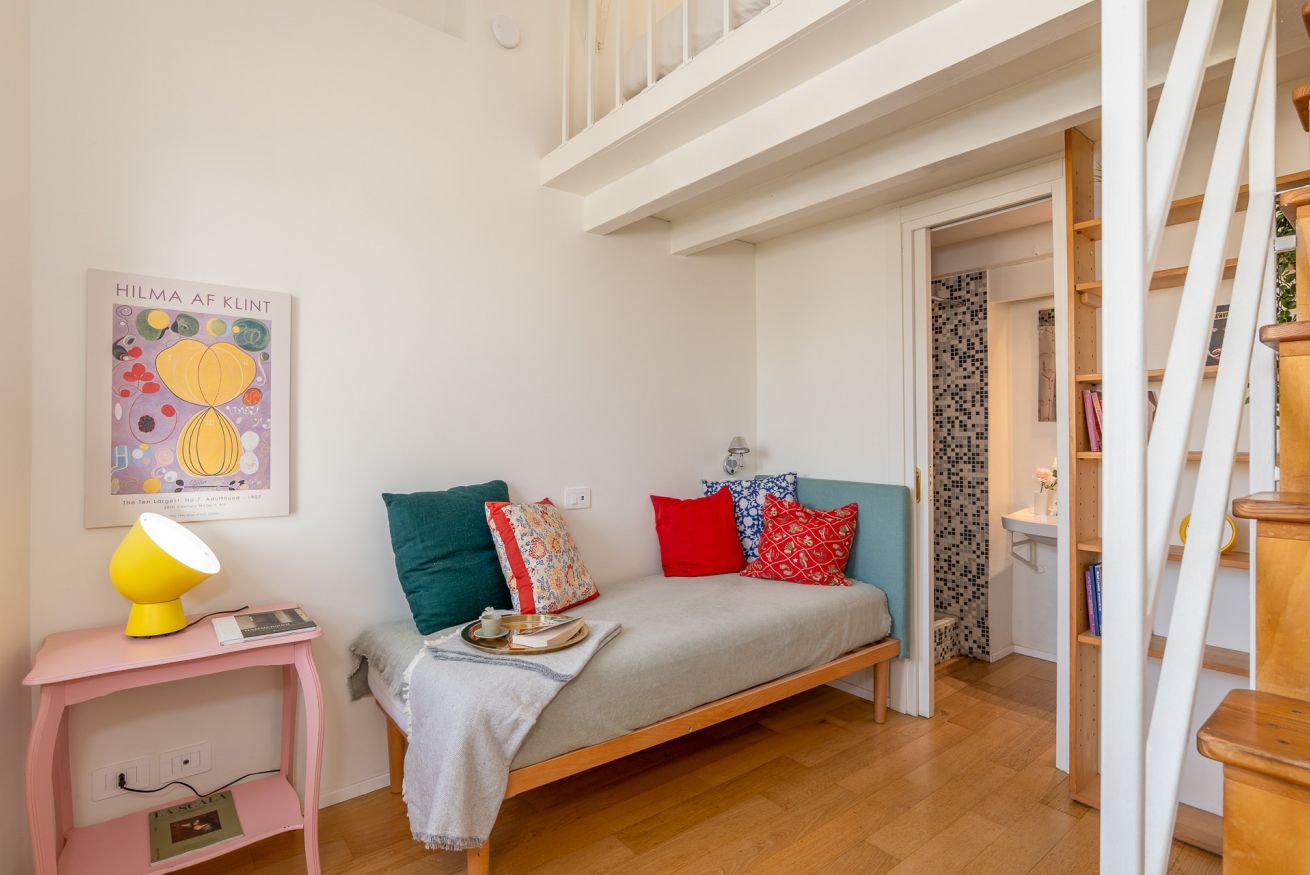 Bilocale luminoso e accogliente situato al quarto piano senza ascensore di un edificio storico in Via Arena 7, nel cuore di Milano. L’appartamento si sviluppa su due livelli: al piano inferiore si trovano una cucina moderna completamente attrezzata con piano a induzione, macchina del caffè e zona pranzo, un soggiorno con divano letto singolo e un bagno con doccia. Una scala interna conduce al soppalco dove si trova un letto matrimoniale con testiera imbottita e atmosfera intima. Gli ambienti sono arredati con stile minimalista e funzionale, caratterizzati da toni chiari, legno naturale e dettagli colorati. Ideale per single o coppie in cerca di un soggiorno confortevole e ben collegato, a pochi passi dai Navigli, dalla Darsena e dal centro città.