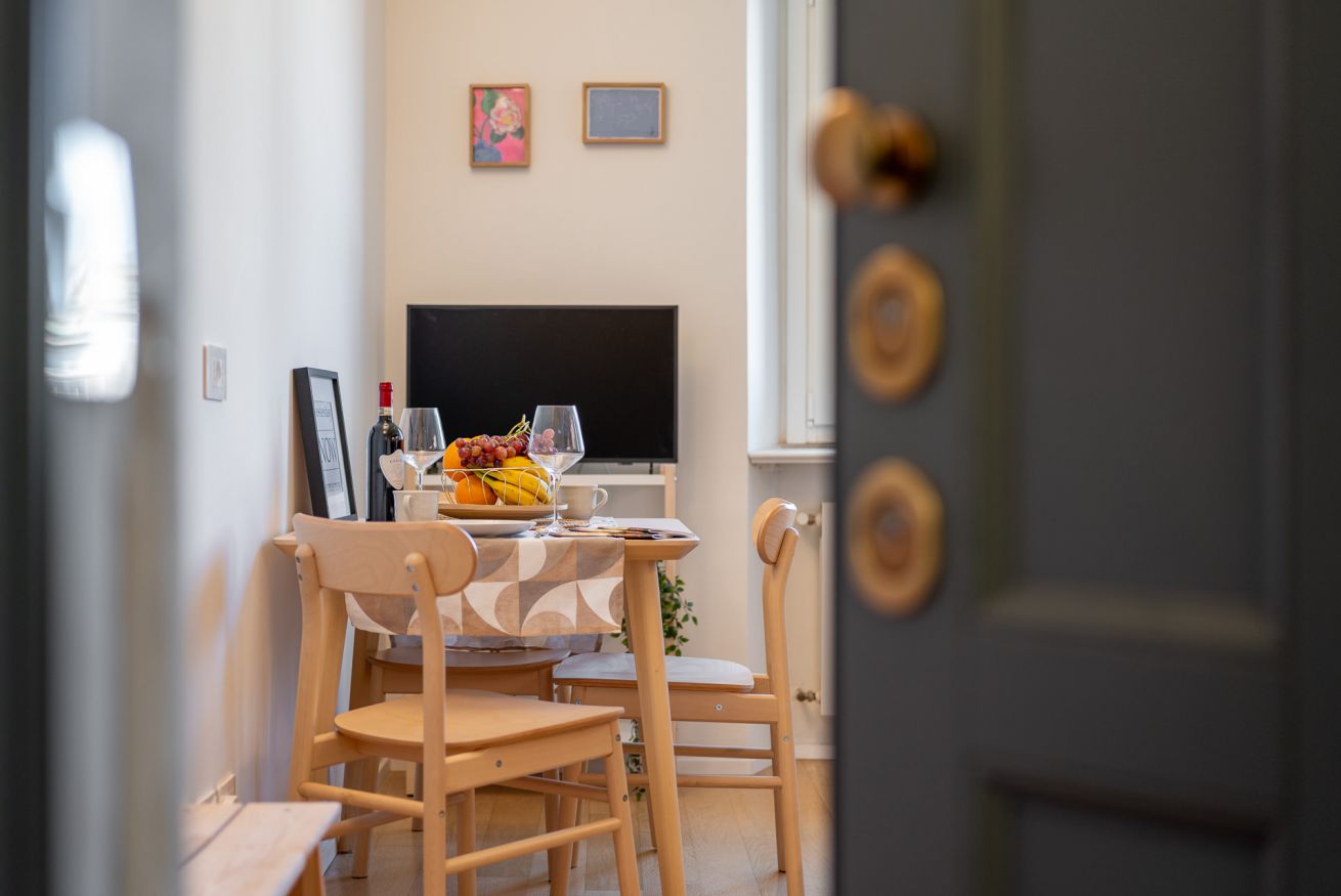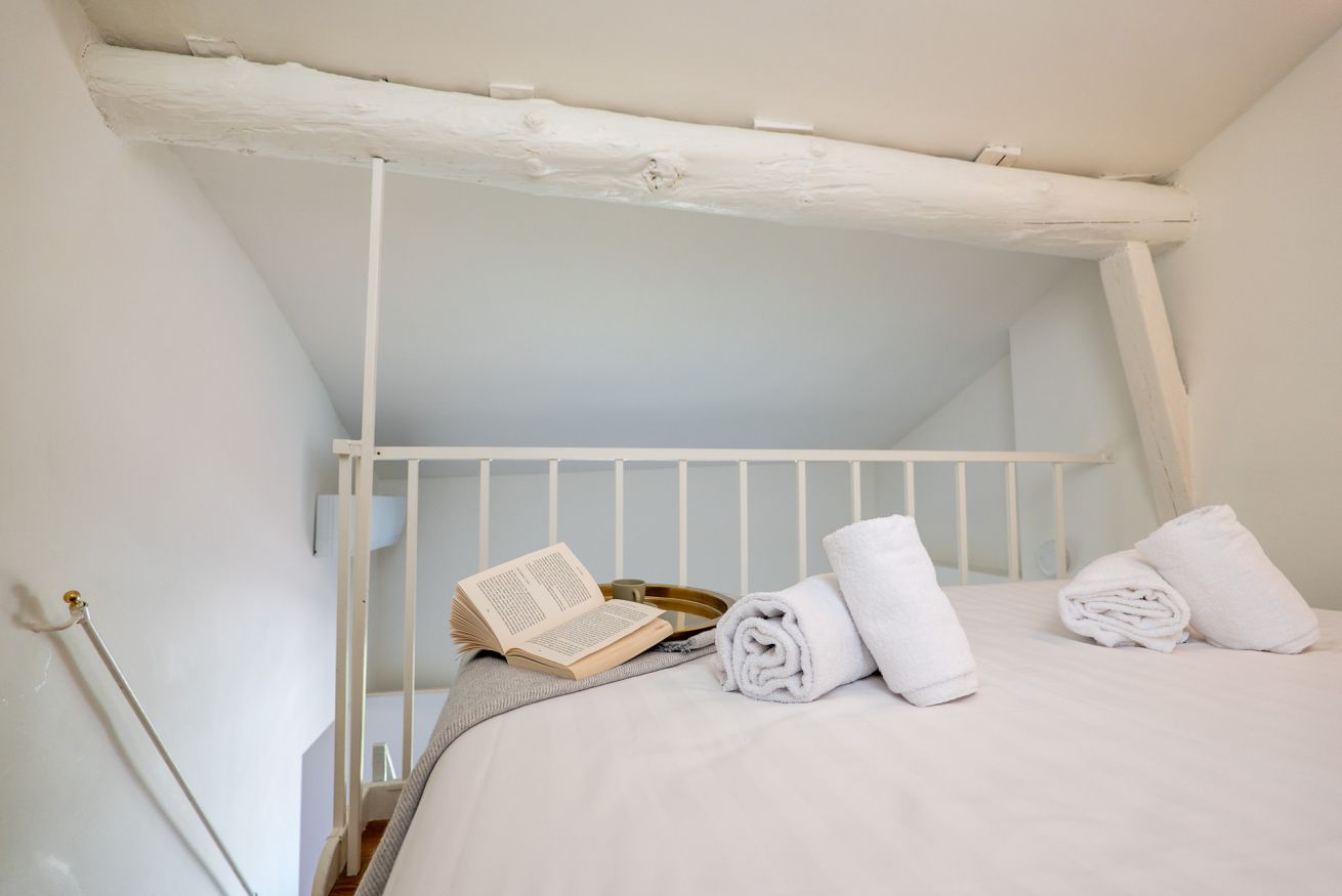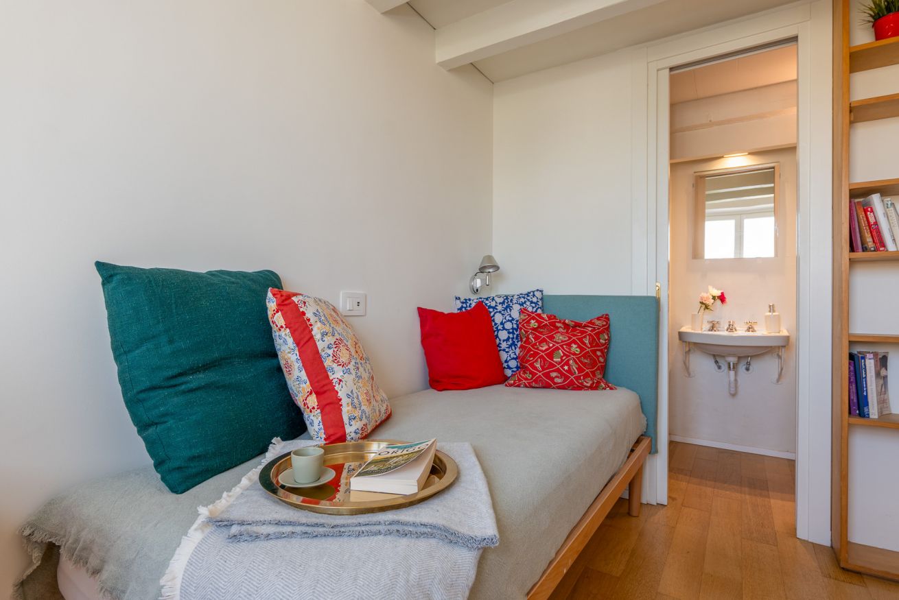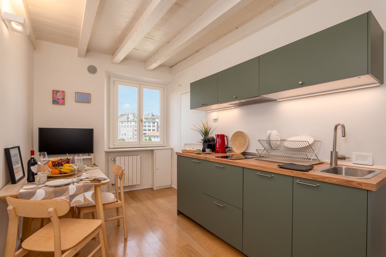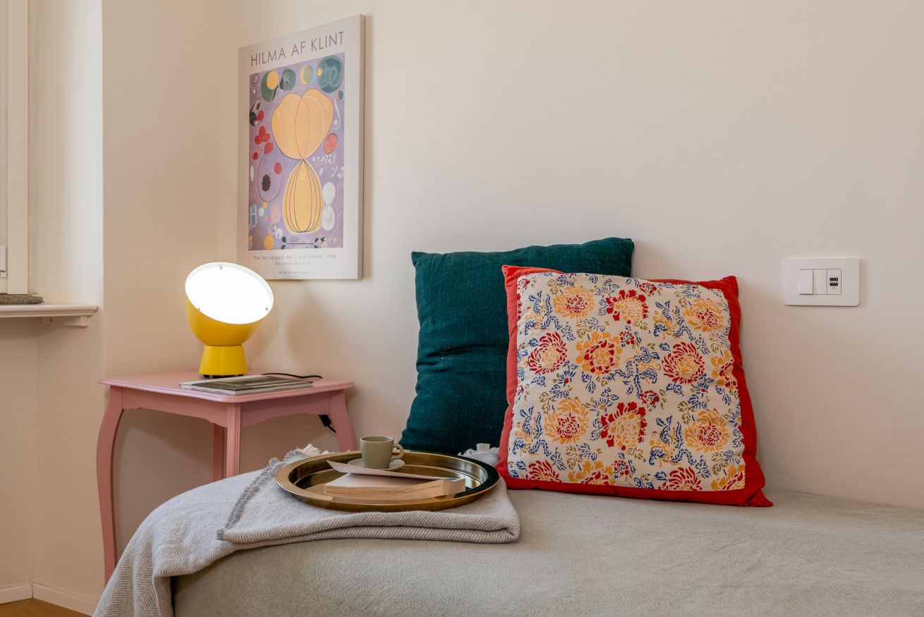 Bilocale luminoso e accogliente situato al quarto piano senza ascensore di un edificio storico in Via Arena 7, nel cuore di Milano. L’appartamento si sviluppa su due livelli: al piano inferiore si trovano una cucina moderna completamente attrezzata con piano a induzione, macchina del caffè e zona pranzo, un soggiorno con divano letto singolo e un bagno con doccia. Una scala interna conduce al soppalco dove si trova un letto matrimoniale con testiera imbottita e atmosfera intima. Gli ambienti sono arredati con stile minimalista e funzionale, caratterizzati da toni chiari, legno naturale e dettagli colorati. Ideale per single o coppie in cerca di un soggiorno confortevole e ben collegato, a pochi passi dai Navigli, dalla Darsena e dal centro città.