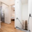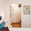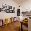Questo elegante appartamento a due piani è situato in un bell'edificio recentemente ristrutturato. Al piano terra, potrete trovare una cucina completamente attrezzata, una tavola da pranzo e un salotto elegantamente arredato con un divano letto matrimoniale e TV.