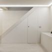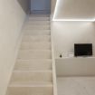 Dalle scale si accede al soppalco dove si trova il letto matrimoniale e la zona ufficio .