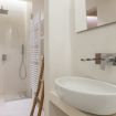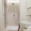 A sinistra il bagno con una comoda doccia e lavatrice.