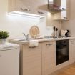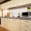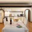 Adiacente al soggiorno, la cucina super moderna è il vero cuore del loft: dotata di elettrodomestici di ultima generazione e rifinita con materiali di alta qualità, è perfetta sia per preparare cene gourmet che per gustare una colazione in un ambiente raffinato. La sua configurazione a vista si integra perfettamente con l’open space, mantenendo un’estetica elegante e funzionale.