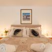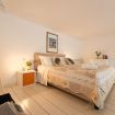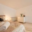La camera da letto, situata al piano terra, è calda e accogliente, arredata con biancheria morbida e dettagli raffinati che la rendono un vero rifugio di riposo. Adiacente alla camera, il bagno spazioso dispone di una grande doccia a filo pavimento, bidet e arredi moderni, combinando praticità e stile.