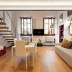 MONALDA SMALL : L'area living si trova su un soppalco, accessibile tramite una scala di design, dove si trova un comodo divano e una TV, creando un angolo rilassante dove distendersi dopo una giornata trascorsa alla scoperta della città. Questo accogliente spazio sopraelevato arricchisce l'atmosfera invitante dell'appartamento, offrendo un'area distinta dedicata al relax.