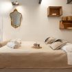 La zona notte è posizionata su un soppalco, raggiungibile tramite una scala di design che conferisce carattere e originalità. Qui, il letto matrimoniale offre un rifugio accogliente e intimo, sospeso sopra il living per una prospettiva suggestiva sull’intero ambiente.