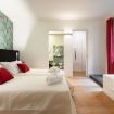 La stanza da letto è comoda e accogliente, ha un comodo letto matrimoniale, è dotata di una cabina armadio e sfoggia una bella e romantica vasca da bagno.