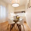 L'entrata è nella bella cucina completamente attrezzata per preparare pranzi o cene. Il tavolo da pranzo è rotondo e accoglie 4 persone.
