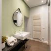 Nel bagno trovi doccia e bidet; lo stile è moderno e pulito. Ti vengono fornite le amenities da bagno, asciugamani e asciugacapelli,
