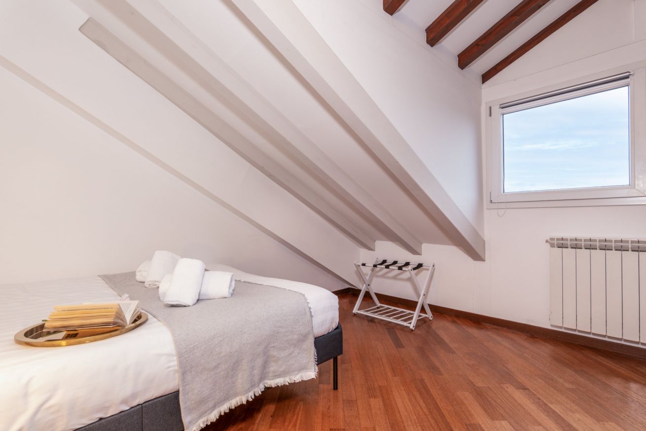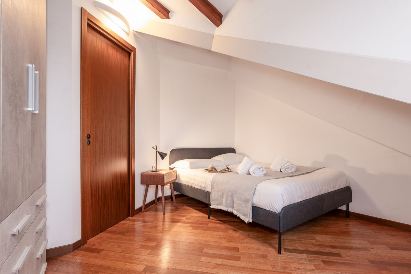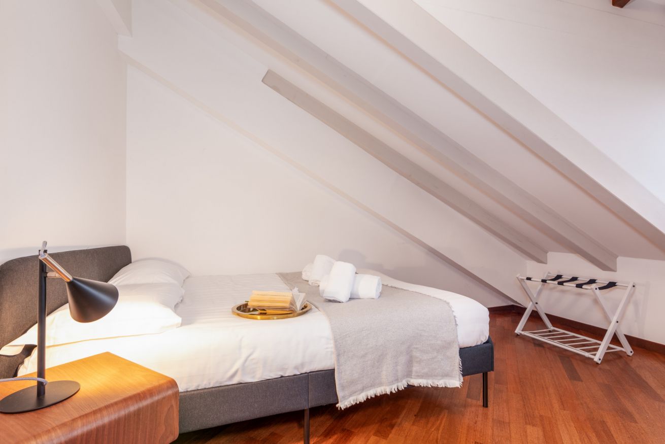 Ampio appartamento mansardato moderno e luminoso, al limitare di Porta Romana. Questo elegante alloggio è perfetto per viaggi di gruppo e per famiglie con camera da letto e soggiorno attrezzato per altri due ospiti, cucina accessoriata e una splendida zona pranzo.